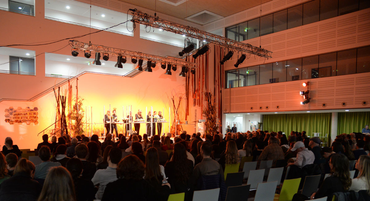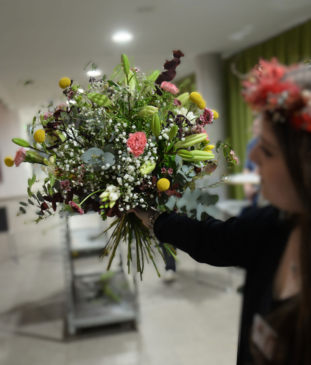 Von der Geburt bis zum Tod - die Floristik begleitet Menschen das gesamte Leben. Unter Leitung der Fachlehrerin Frau von Mackensen präsentierten die Auszubildenden ihre Kenntnisse und Fertigkeiten im Rahmen einer bunten und blumigen Veranstaltung. Die Gäste - v.a. Ausbilder, Lehrkräfte, Eltern und Freunde - verfolgten in der Aula des Beruflichen Schulzentrums, wie die Schülerinnen ihre Werkstücke nach Prüfungskriterien der Zwischen- und Abschlussprüfungen „live“ anfertigten. Mit Trauerkränzen und Urnenschmuck zeigten sie beeindruckende Beispiele für Trauerfloristik. Für die heiteren Ereignisse im Leben wurden kunstvolle Gefäßfüllungen angefertigt und äußerst kreative und farbenfrohe Sträuße gebunden.